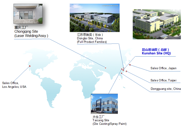思瑞奕電子有限公司成立于2010年10月,注冊資金7500萬人民幣,總部位于江蘇省昆山市,在重慶、江蘇東臺、江蘇太倉設有分廠,公司于2011年通過ISO9001/ISO14001認證,2013年通過高新技術企業(yè)和TS16949(IATF)體系認定,2016年先后通過知識產權管理體系認證、安全生產標準化認證,2017年獲頒江蘇省民營科技企業(yè)、2018年先后獲得蘇州市人民政府認定企業(yè)技術中心、科技部認定中小型科技企業(yè)、江蘇省最具成長性高科技企業(yè)、2020年獲得江蘇省人民政府認定企業(yè)技術中心、2021年獲得蘇州市瞪羚計劃入庫企業(yè)、江蘇省省級工程技術研究中心、江蘇省專精特新中小企業(yè)等榮譽稱號......